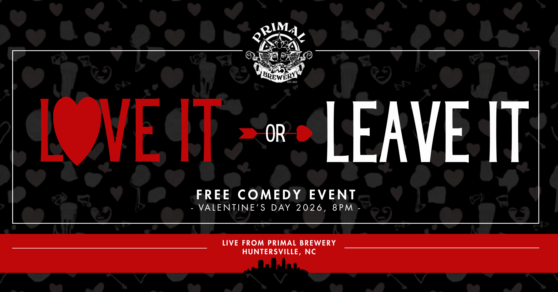 Get ready for a night of laughs at the Love It or Leave It Comedy Show, a free stand-up comedy event open to everyone! Join us on Valentine’s Day at 8pm in the garage at the Huntersville Taproom for a fun, laid-back evening featuring some great local comedy talent.