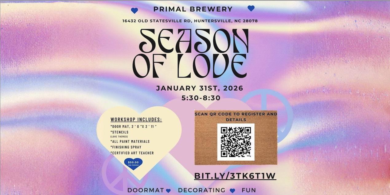 Let’s get together and celebrate the season of love, Valentine’s Day. Whether you come with family, friends, or significant other memories are made with sharing time together and getting creative. Primal has a variety of beers, seltzers, and even wine available with a laid-back vibe.